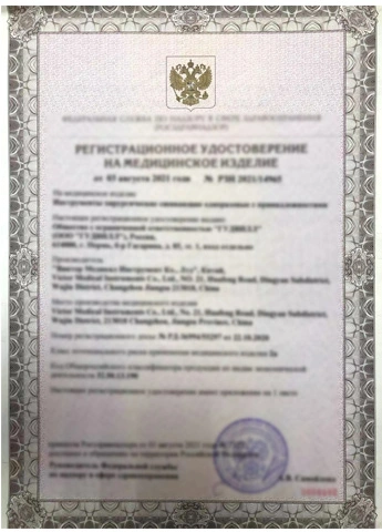 Al cumplir estrictamente con los requisitos operativos de ISO13485, GMP y CE, elInstrumentos de cirugíaProducidos por Victor Medical han sido certificados sucesivamente por CFDA, La FDA de EE. UU., de Brasil ANVISA, La FDA coreana, el registro de la India, el registro de Irán, La SFDA de Arabia Saudita y las administraciones relevantes de otras naciones.